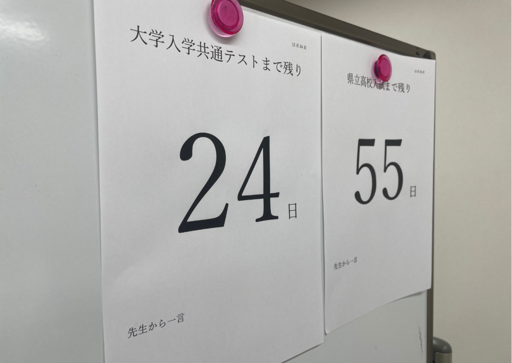 中学生は公立入試まで残り55日、高校生は共通テストまで残り24日となりました。