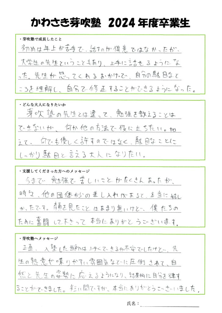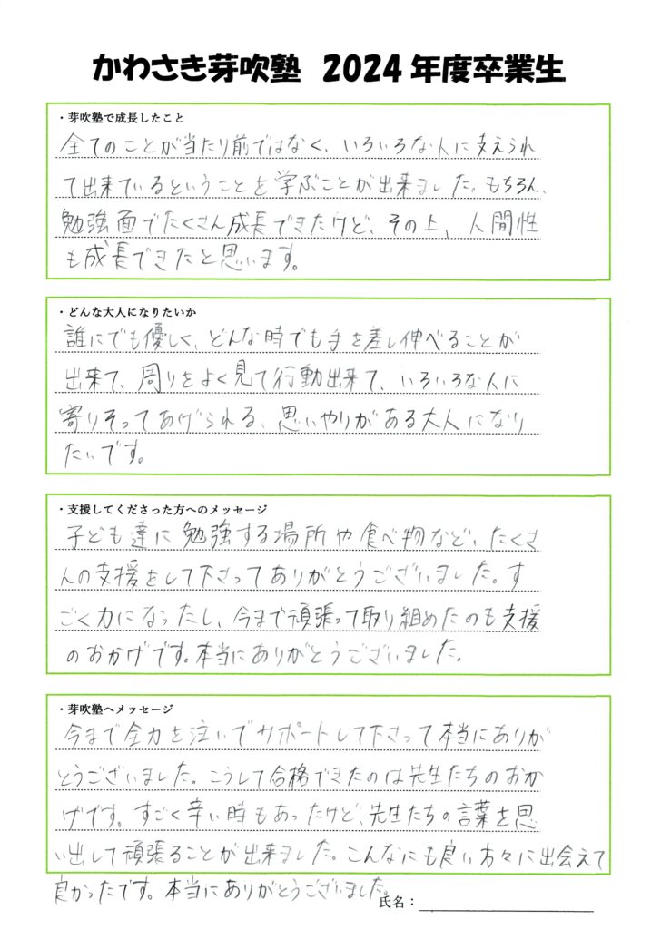 4期生 卒業メッセージ